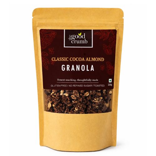 Made with gluten-free oats, crunchy almonds, seeds, and a hint of cocoa, every bite is naturally satisfying and full of goodness.